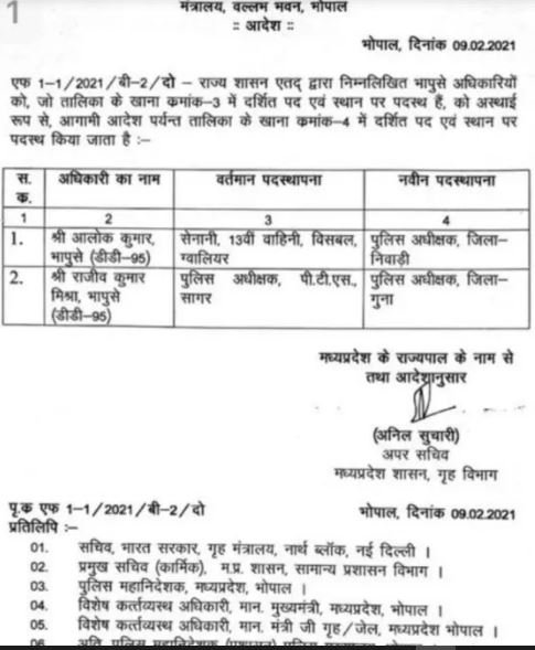 IPS officers transferred in MP, Guna and Niwari got new SPs